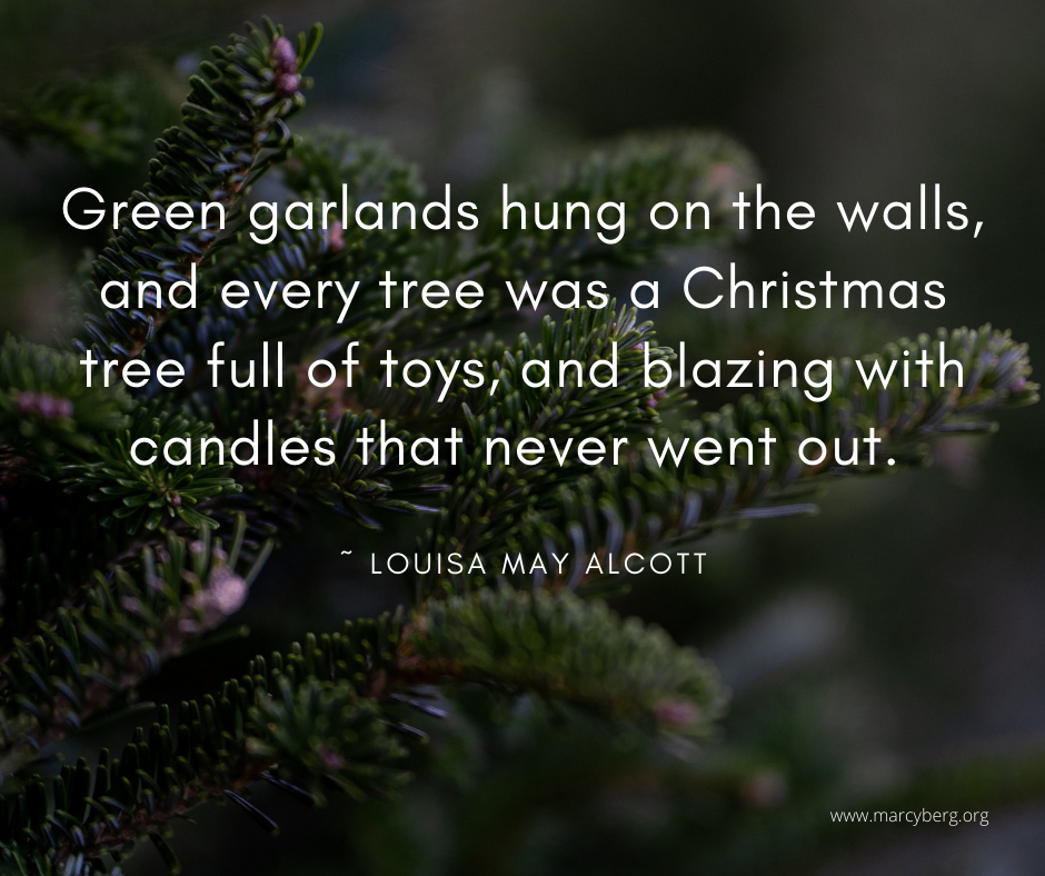 “Green garlands hung on the walls, and every tree was a Christmas tree full of toys, and blazing with candles that never went out.” ~Louisa May Alcott, A Christmas Dream, and How It Came to Be True.